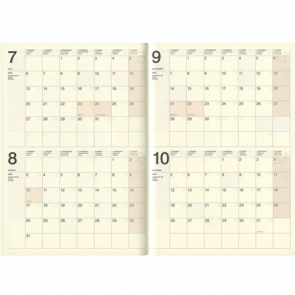 ページ構成は見開き1ヶ月のガントチャート&見開き4ヶ月のブロックタイプマンスリー。