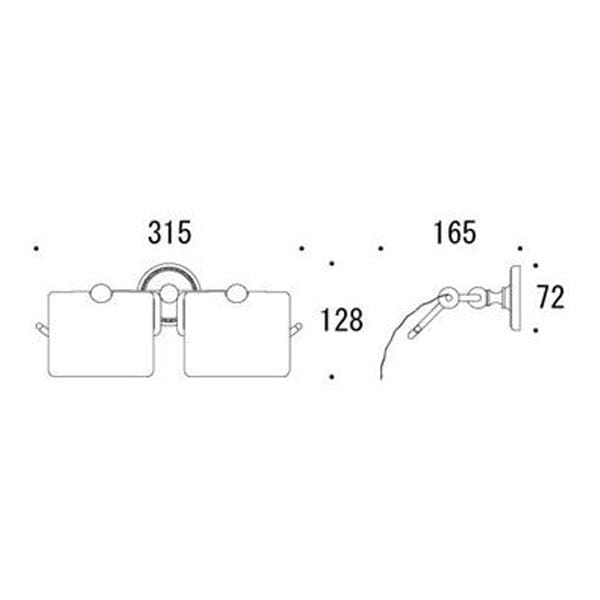素材 真鍮・クロームメッキ仕上げ サイズ 幅315×高さ128×奥行165mm 取付け方法 ビス止め(取付けビス付属) ※別売りの「石膏ボード取付部品PL4」をご使用になれば、石膏ボードへの取付けも可能になります。