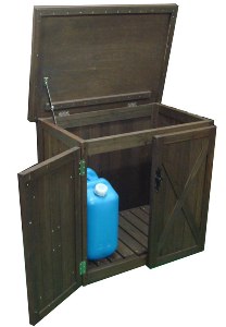 サイズ:本体/幅 約770×奥行 約560×高さ 約740mm収納有効内寸/幅 約650×奥行 約435×高さ 約575mm重量:約16kg材質:杉天然木 ステイン塗装お客様組み立て商品生産国:中国※天板開閉(ストッパー付き)※脚部アジャスター付き※木屋根 裏面防水シート貼り(完全防水ではありません。