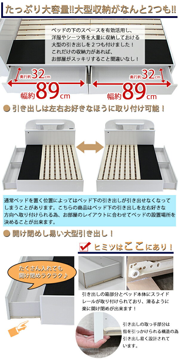 +セミダブルマットレス ○大人気のベッドシリーズ!! 【ベッド】 ●ベッド下に大型収納の引き出しが2つ設置されています。